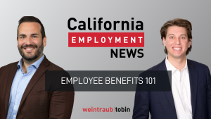 In this episode of California Employment News, Weintraub Tobin attorneys Chris Horsley and Ryan Abernethy break down employer obligations related to 401(k) retirement plans, CalSavers, and health benefits.